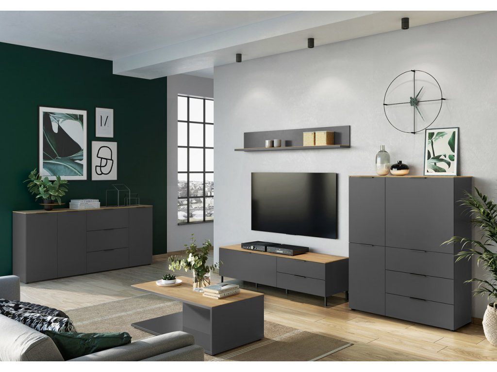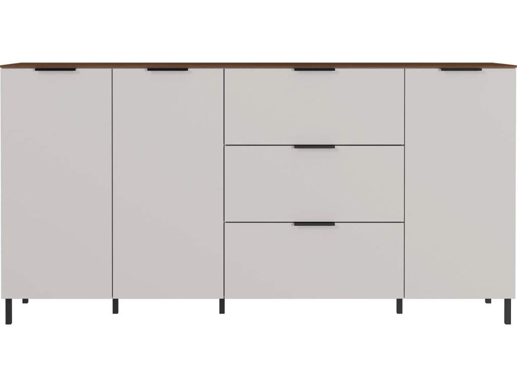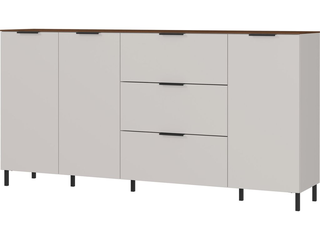 Komoda 1476 z programu California je vybavená tromi dvierkami s tlmením dovieraním a tromi zásuvkami so soft-close technológiou jemného zatvárania. Za dvierkami sú celkom tri nastaviteľné police. So šírkou 192 cm, výškou 98 cm (s vysokými kovovými nožičkami) a hĺbkou 40 cm ponúka dostatok úložného priestoru na riad alebo obrusy. Komoda sa dodáva buď v kašmírovom, teplom béžovom tóne, s vrchným panelom v dekore orecha (č. modelu 1476-573) alebo v grafite kombinovanom s dekorom duba navarra (č. modelu 1476-549).