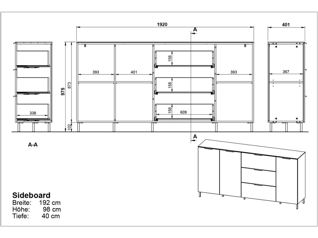 Všetok nábytok Germania je vyvinutý a vyrobený v Nemecku. Je dodávaný vrátane montážnej sady (v závislosti od konštrukcie steny je potrebné dokúpiť samostatne len skrutky a hmoždinky).