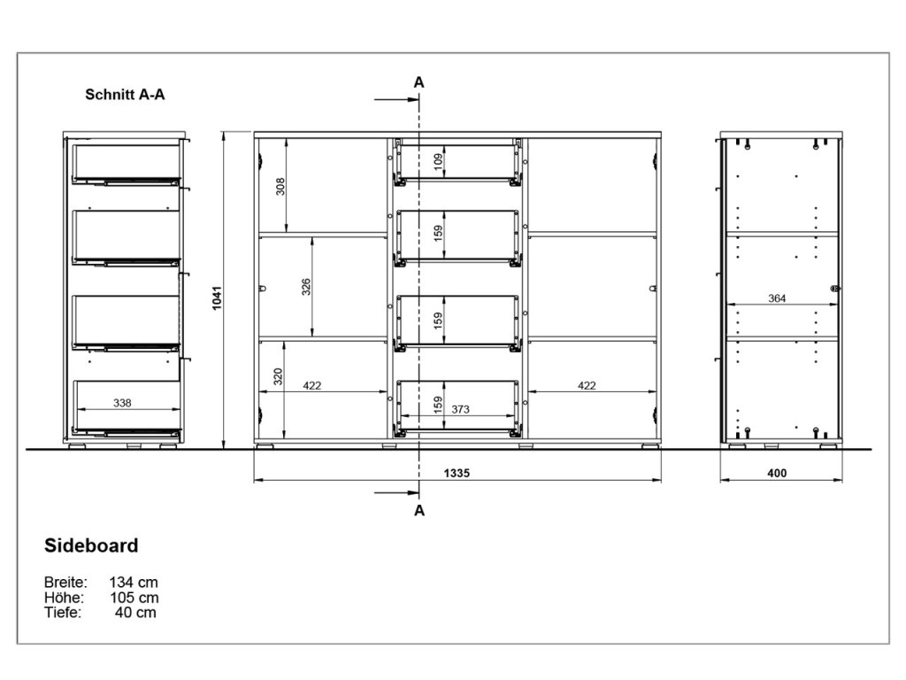 So šírkou 135 cm, výškou 105 cm a hĺbkou 40 cm je komoda 3982-242 Telde dokonalým kusom nábytku do všetkých obytných priestorov. Za každým dvierkami sú dve police. Ponúkajú priestor pre riad, knihy a iné bytové doplnky. Dvere sú navyše vybavené integrovaným systémom tlmenia, ktorý umožňuje ich jemné zatváranie. Štyri zásuvky sú vybavené samozatváracím mechanizmom a vytvárajú ďalší úložný priestor. Kvalitné ABS hrany a povrchová úprava z melamínovej živice dodávajú komode vysokú povrchovú tvrdosť a dobrú odolnosť proti nárazom.