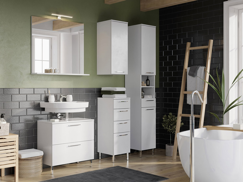 Kúpeľňové skrinky vo všetkých prevedeniach sa vyznačujú ľahkou montážou a intuitívnym používaním, vďaka čomu je zariaďovanie kúpeľne rýchle a jednoduché. Pre ešte viac úložného priestoru ponúkame nástenné skrinky, ktoré šetria miesto na podlahe a zároveň poskytujú ďalšie úložné možnosti. Sú ideálne na uskladnenie drobných kozmetických a hygienických potrieb, ktoré chcete mať po ruke, no zároveň mimo dohľadu.