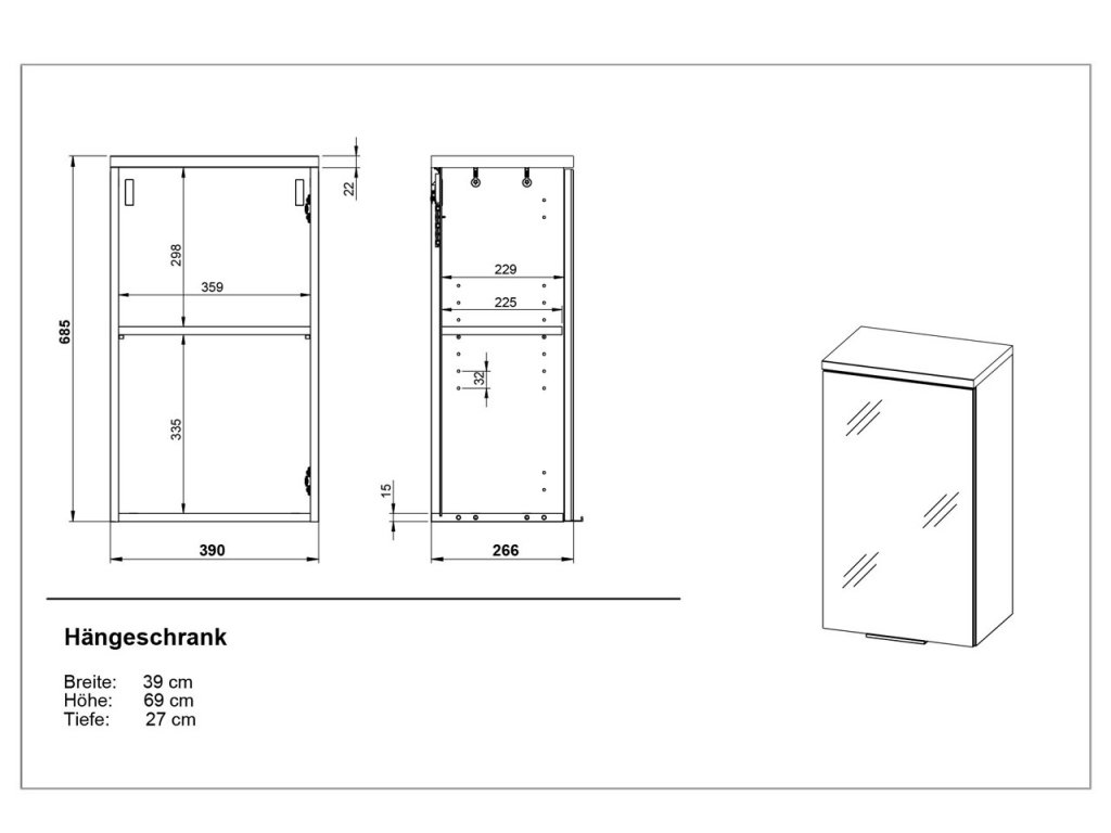 Vizuálny vzhľad závesnej skrinky 2750 Pescara dopĺňajú jej technické detaily. So šírkou 39 cm, výškou 69 cm a hĺbkou 27 cm ponúka tento kus nábytku dostatok úložného priestoru, ktorý navyše podčiarkuje nastaviteľná polica. Aby vaše uložené veci neboli pre každého priamo viditeľné, je polica ukrytá za dvierkami, ktoré sa dajú jemne otvárať a zatvárať vďaka integrovanému tlmeniu.