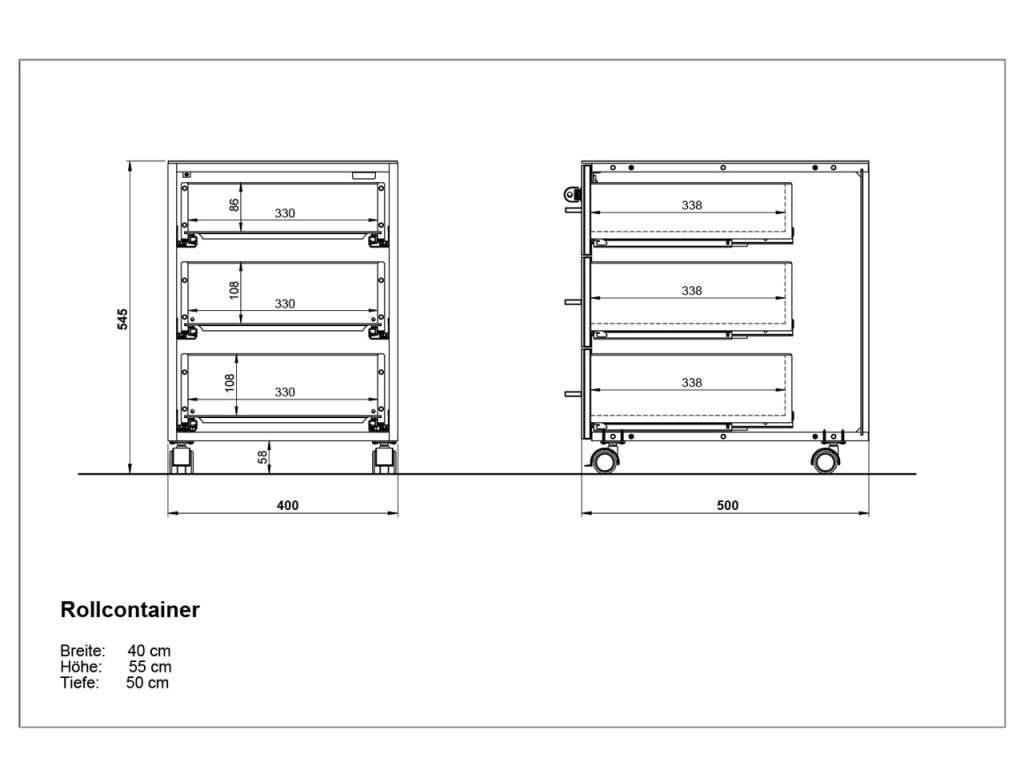Mobilný kontajner je dostupný v dvoch rôznych dekoroch. Jeden variant je celý v bielej farbe (model. č. 4201-84), druhý v dekore duba navarra s bielymi čelami a hornou doskou (č. modelu 4201-242).