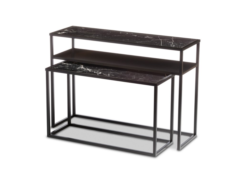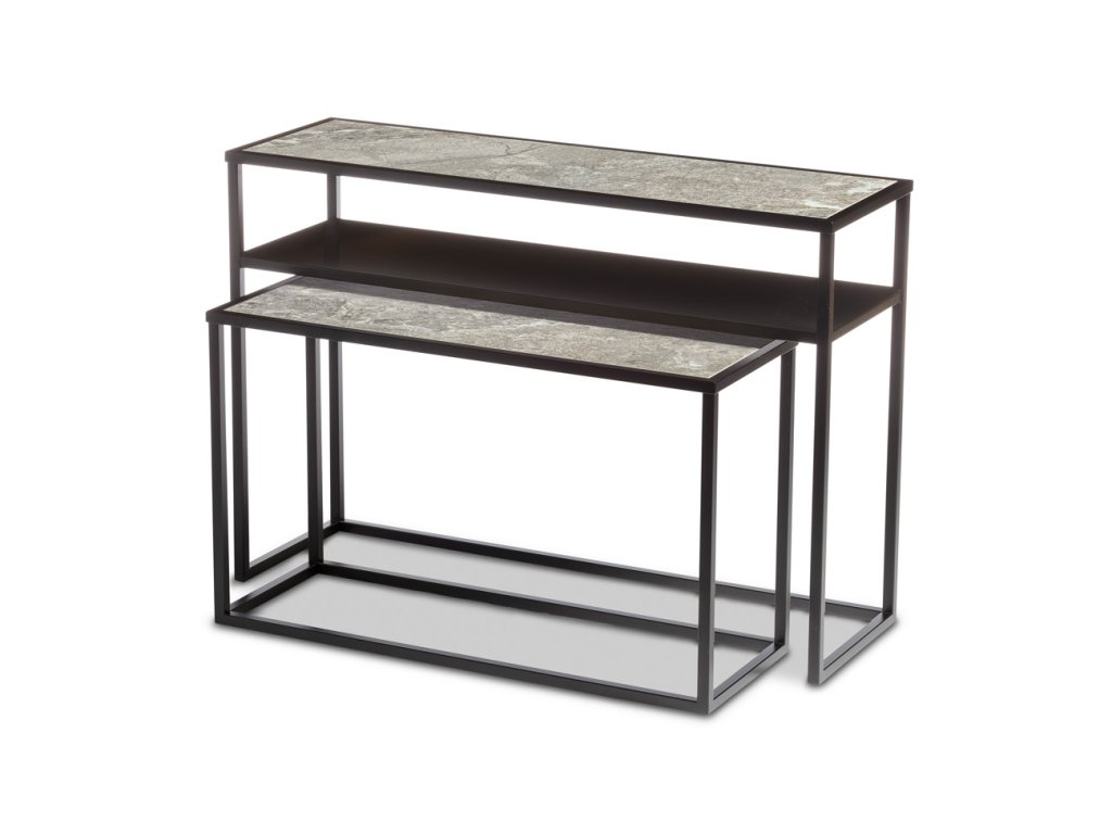 dosky stolov z vysoko kvalitného skla, dymového skla alebo keramiky sú štýlovo kombinované s elegantnými kovovými podnožami.