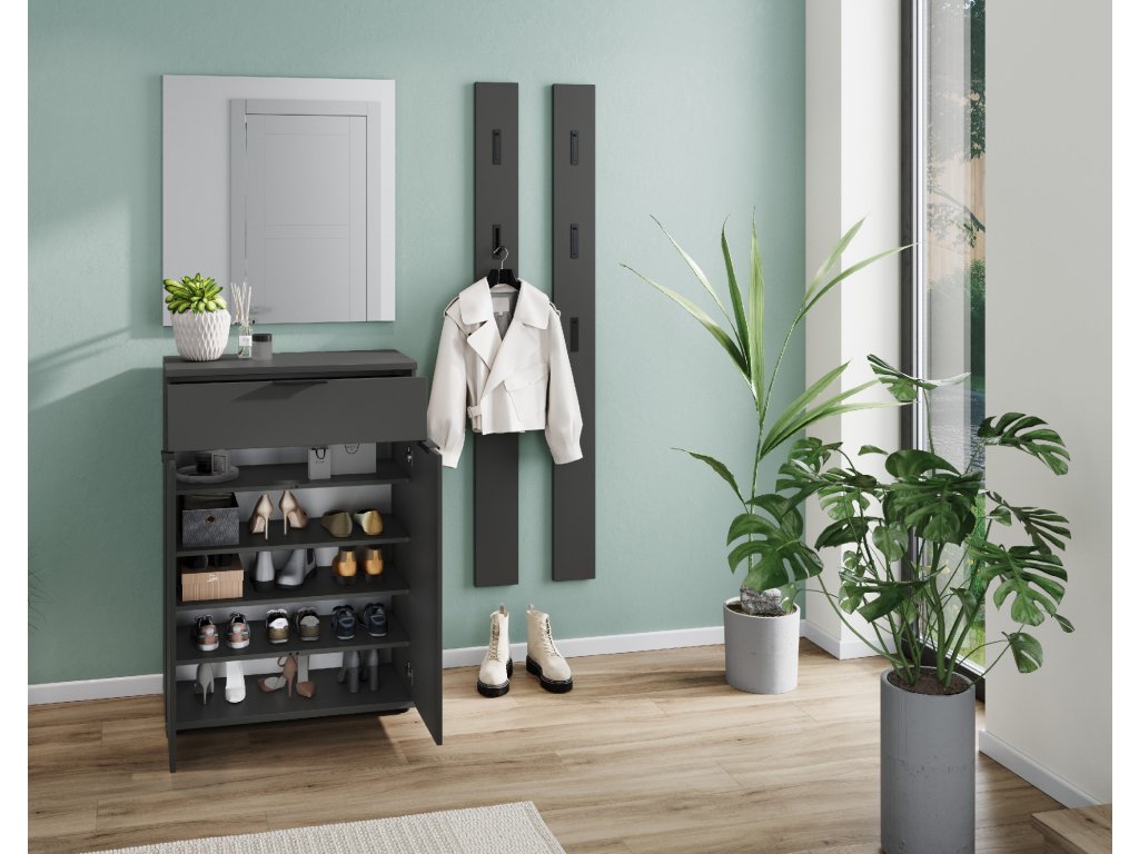 Táto skrinka na topánky 2790 Stanton je vybavená 4 nastaviteľnými policami určenými na uskladnenie až 15 párov topánok a jednou praktickou zásuvkou. Skvelo sa kombinuje so zrkadlom (č. modelu 2427, alebo model 1297) a vešiakovou stenou (model č. 3728).