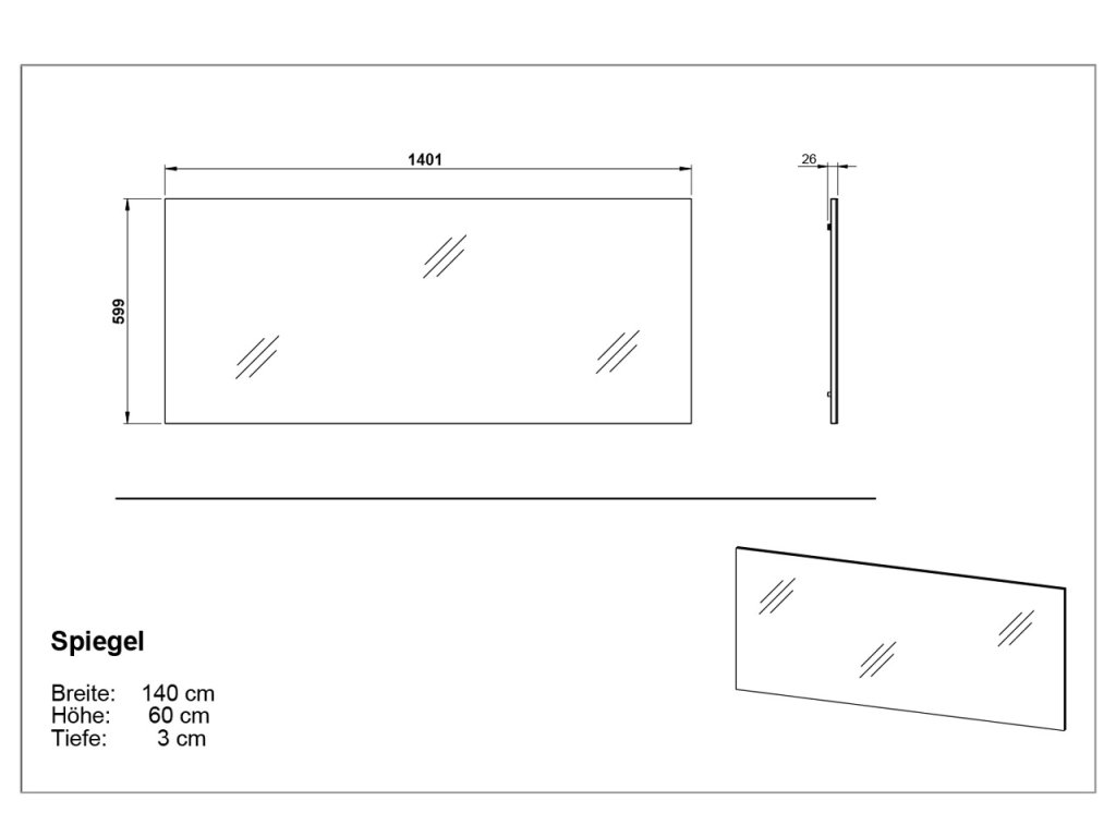 Zobrazené zrkadlo je ideálnym doplnkom ku skrinkám na topánky 2576 a 2578 zo série Utah. So šírkou 140 centimetrov a výškou 60 centimetrov sa skvele hodí aj k ostatnému nábytku značky Germania. Kvalitné ABS hrany robia zrkadlo robustným a odolným voči nárazom.